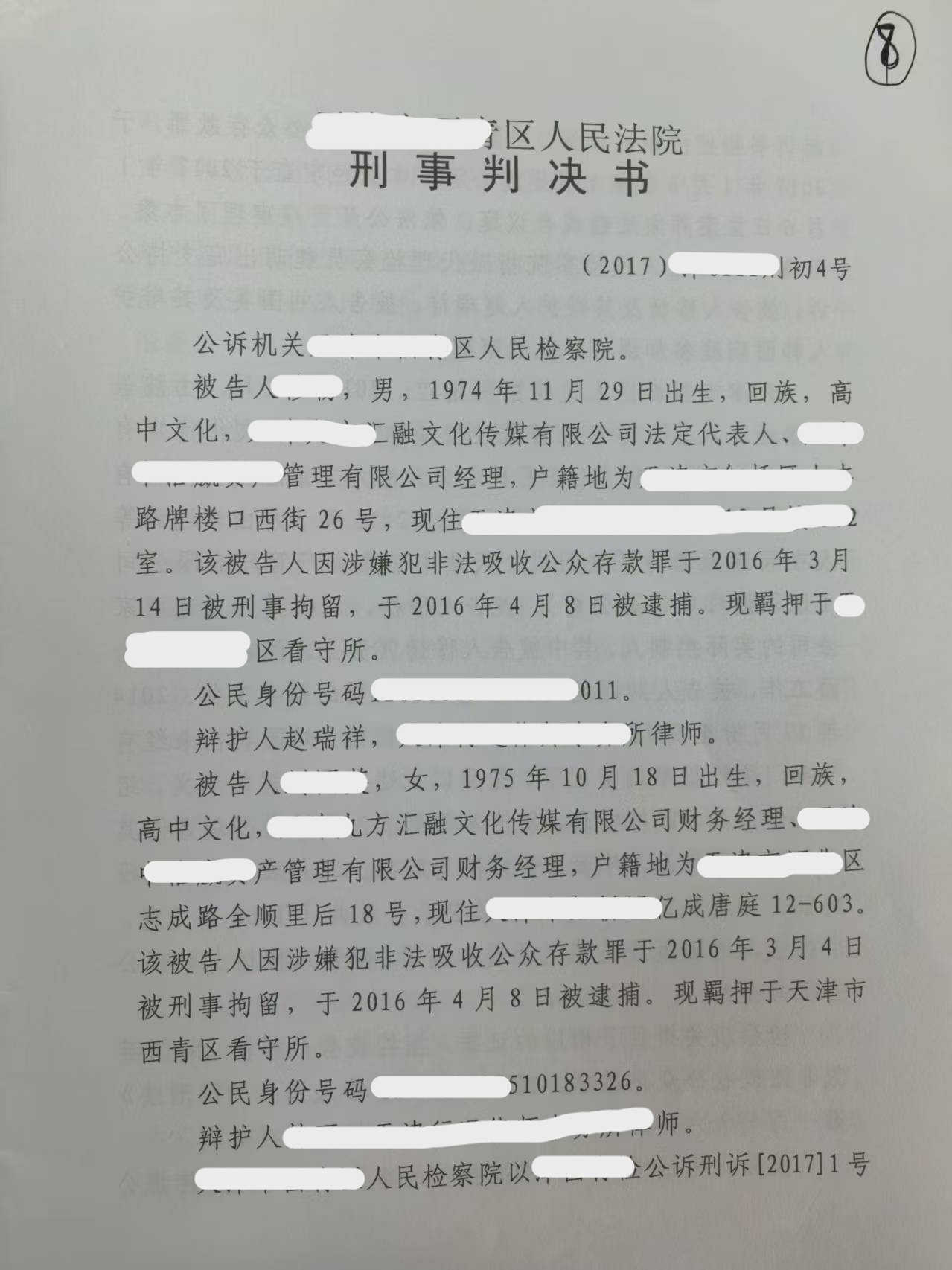 17、北京刑事辩护律师赵瑞祥辩护高某某非法吸收公众存款案