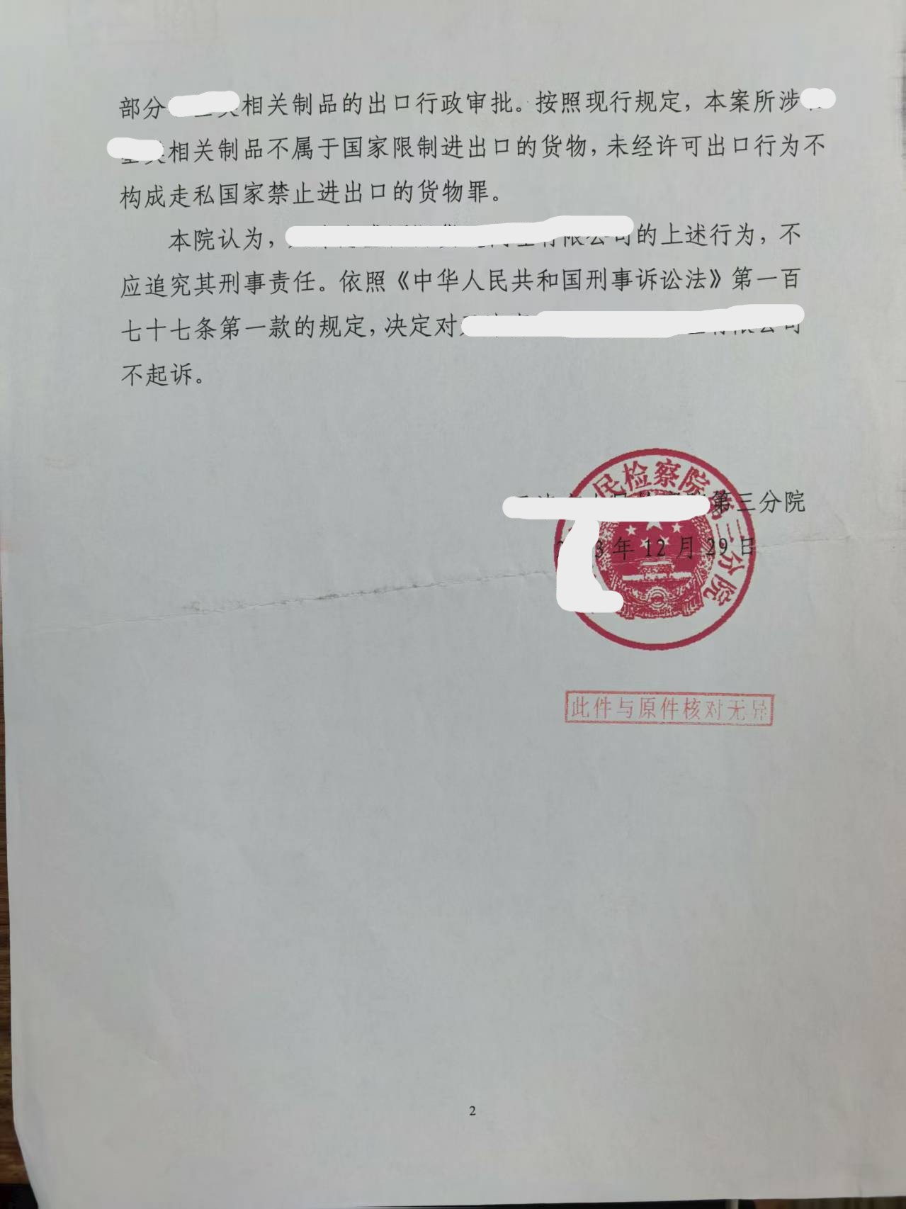 检察机关认为,按照现行规定,本案所涉XXX相关制品不属于国家限制进出口的货物,未经许可出口行为不构成走私国家禁止进出口的货物罪。本院认为,该单位的上述行为,不应追究其刑事责任。依照《中华人民共和国刑事诉讼法》第一百七十七条第一款的规定,决定对XXX不起诉。